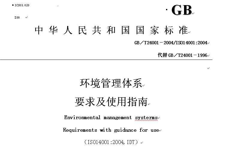 • 本標準是GB/T24000系列中的一項標準。本標準等同采用ISO14001:2004《環境管理體系要求及使用指南》本標準代替GB/T24001-1996。本標準與GB/T240...